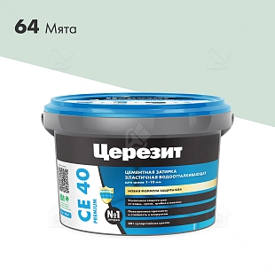 Затирка для швов до 10 мм водоотталкивающая Церезит СЕ 40 Аквасатик 64 мята 2 кг.