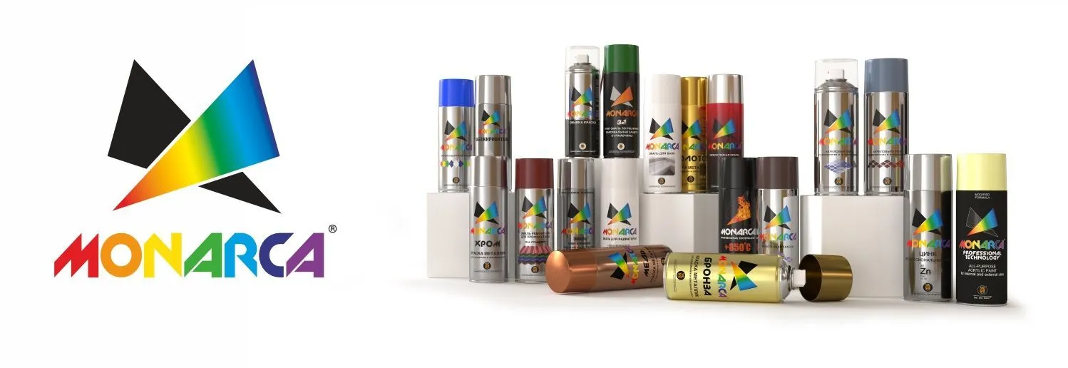Ассортимент аэрозолей MONARCA® включает акриловые красители, антикоррозионные грунты, термоустойчивые покрытия,
