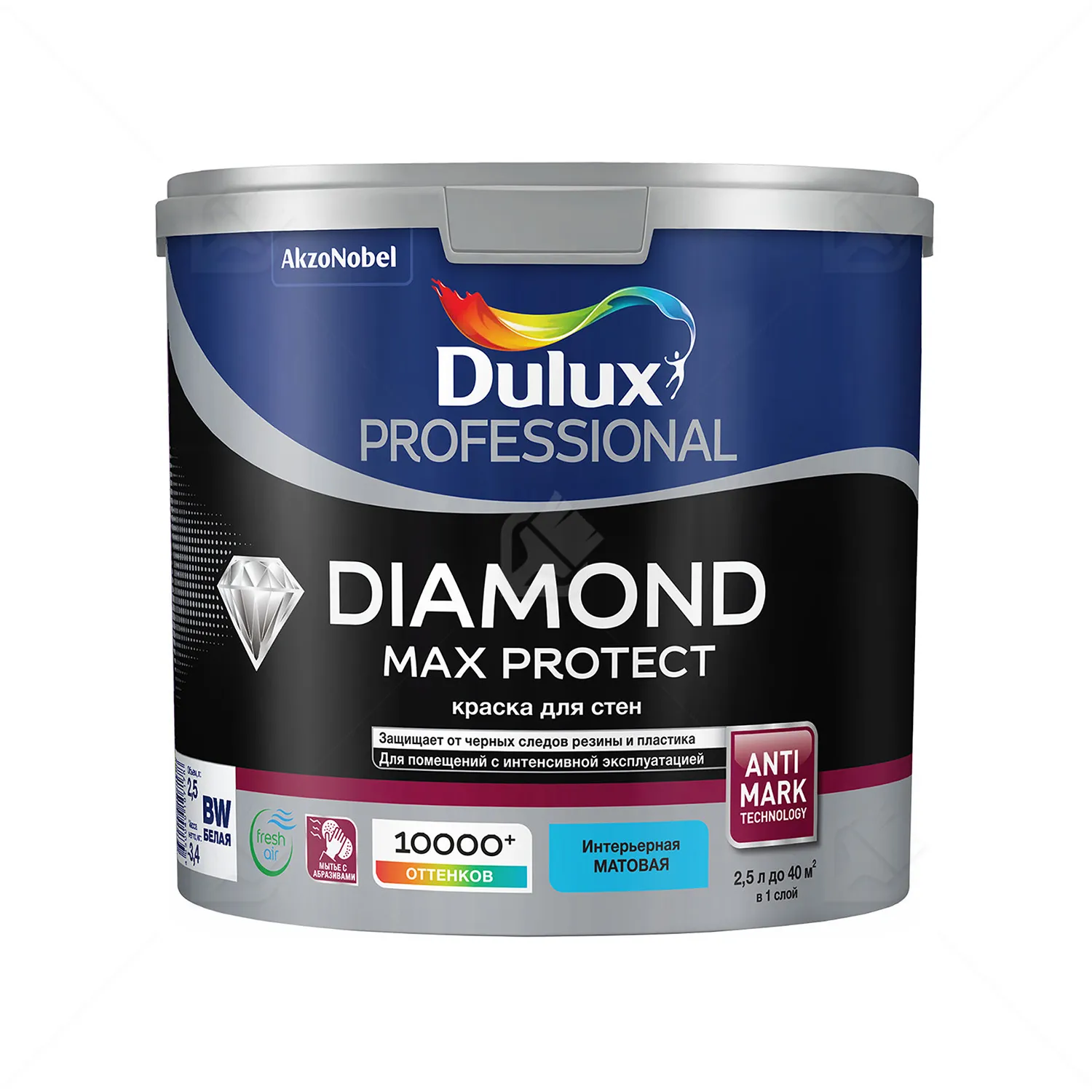 Краска для стен и потолков водно-дисперсионная Dulux Diamond Max Protect глубокоматовая база BС 2,25 л.