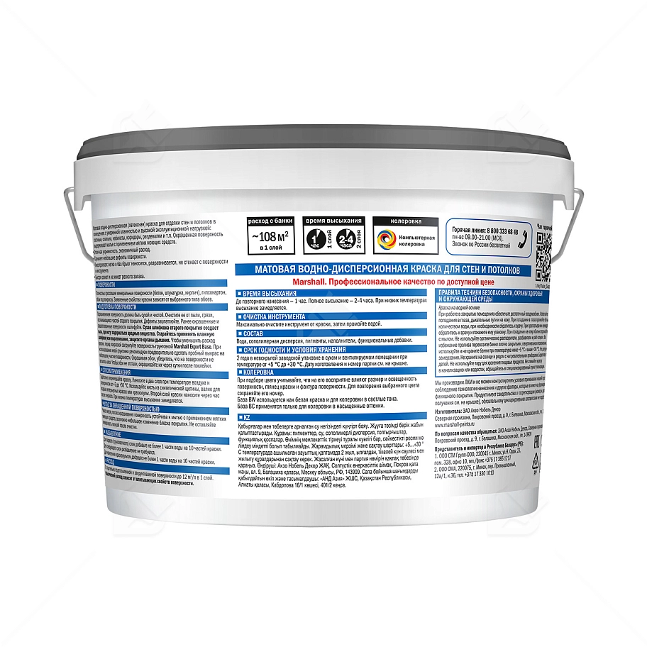 ПодробнееКраска для стен и потолков латексная Marshall Export-7 матовая база BC 9 л.