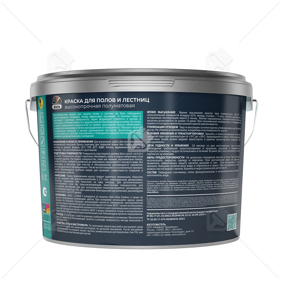 Эмаль для полов и лестниц Dufa акриловая полуматовая база 3 8,1 л