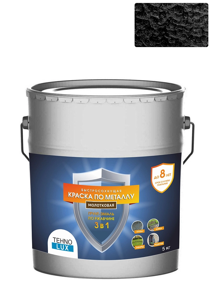 Грунт-эмаль 3 в 1 Технолюкс молотковая черная 5 кг