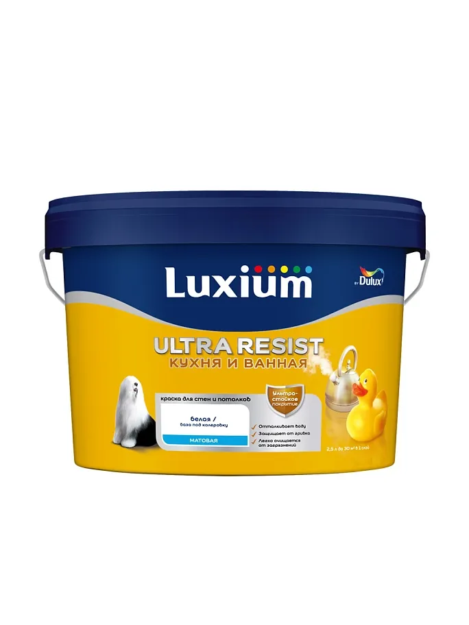 ПодробнееКраска для кухни и ванной латексная Luxium Ultra Resist матовая база BW 5 л
