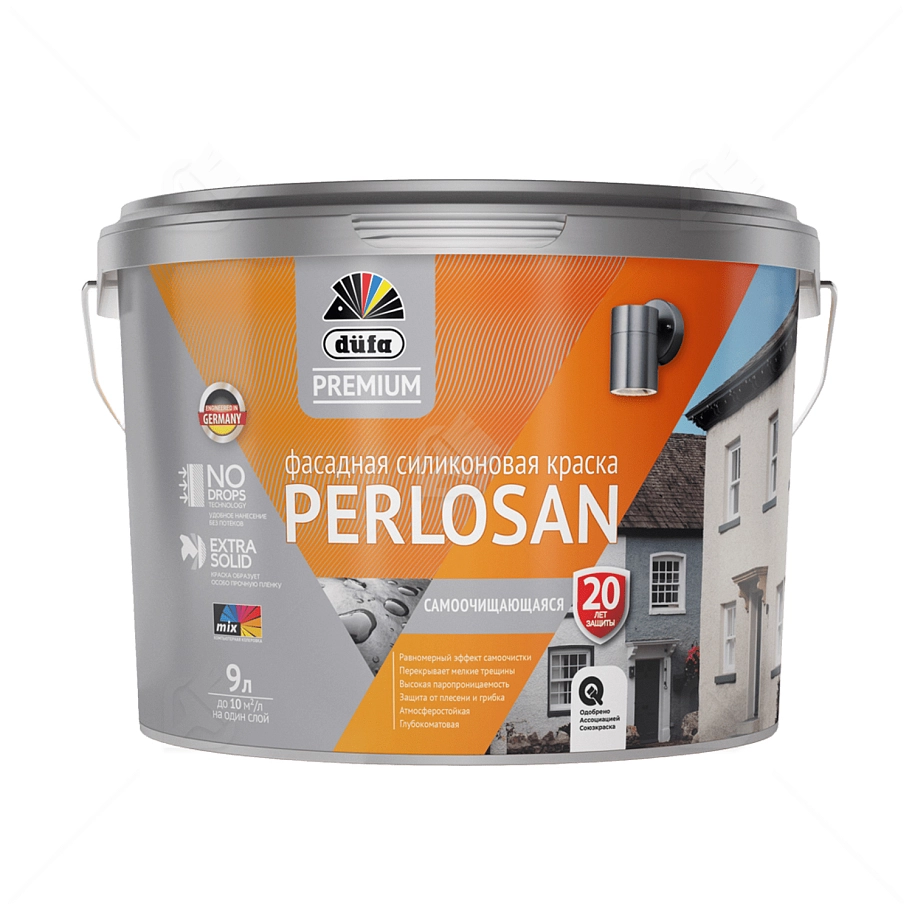 Краска фасадная силиконовая самоочищающаяся Dufa Premium Perlosan база 1 9 л