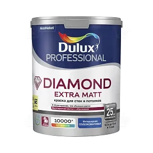 Краска для стен и потолков водно-дисперсионная Dulux Diamond Extra Matt глубокоматовая база BW 5л / 4,5л