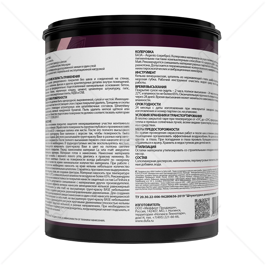 Покрытие декоративное Dufa Creative La Seta matt эффект велюра база ARGENTO 1,2 кг