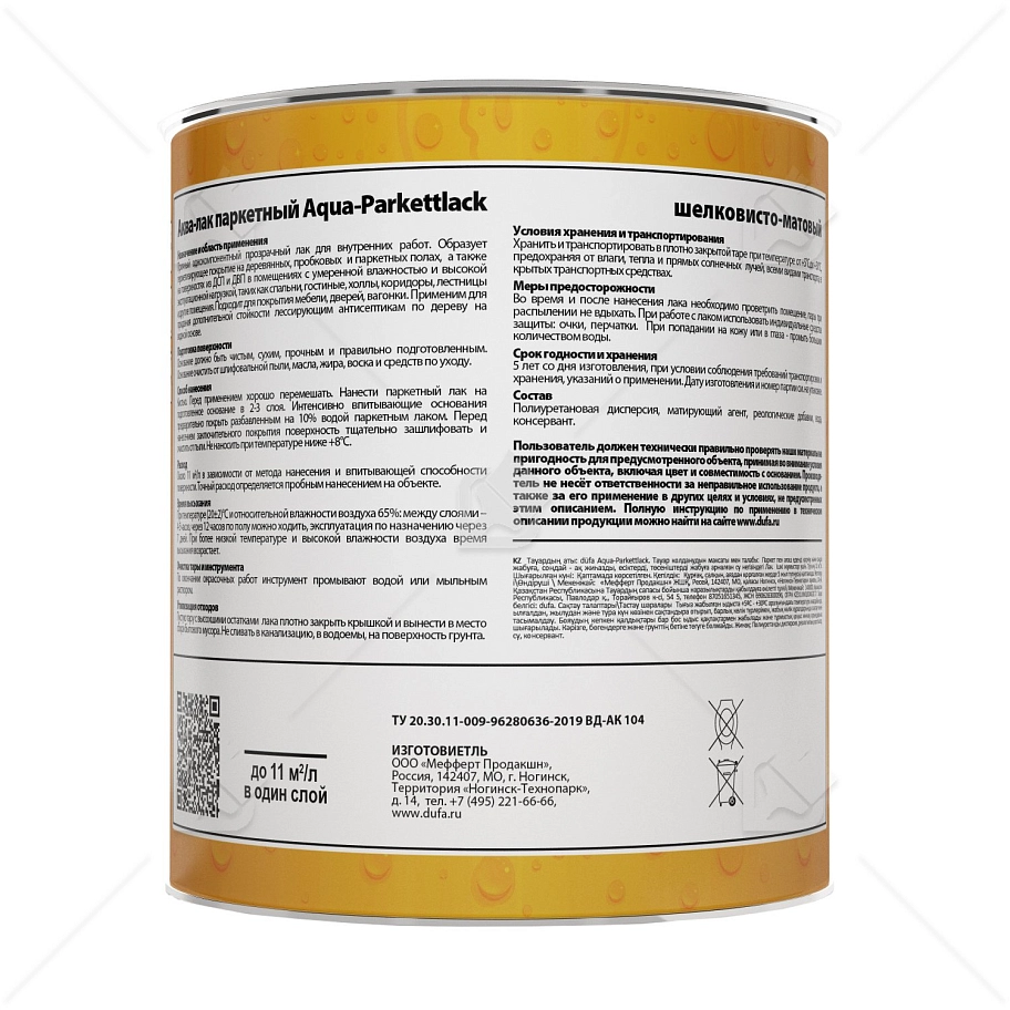 Однокомпонентный паркетный лак для защитно-декоративного покрытия паркета и деревянного пола с нормальной эксплуатационной нагрузкой, а также для покрытия мебели, дверей, вагонки. Стойкий к истиранию, разбавляется водой, для внутренних работ.
