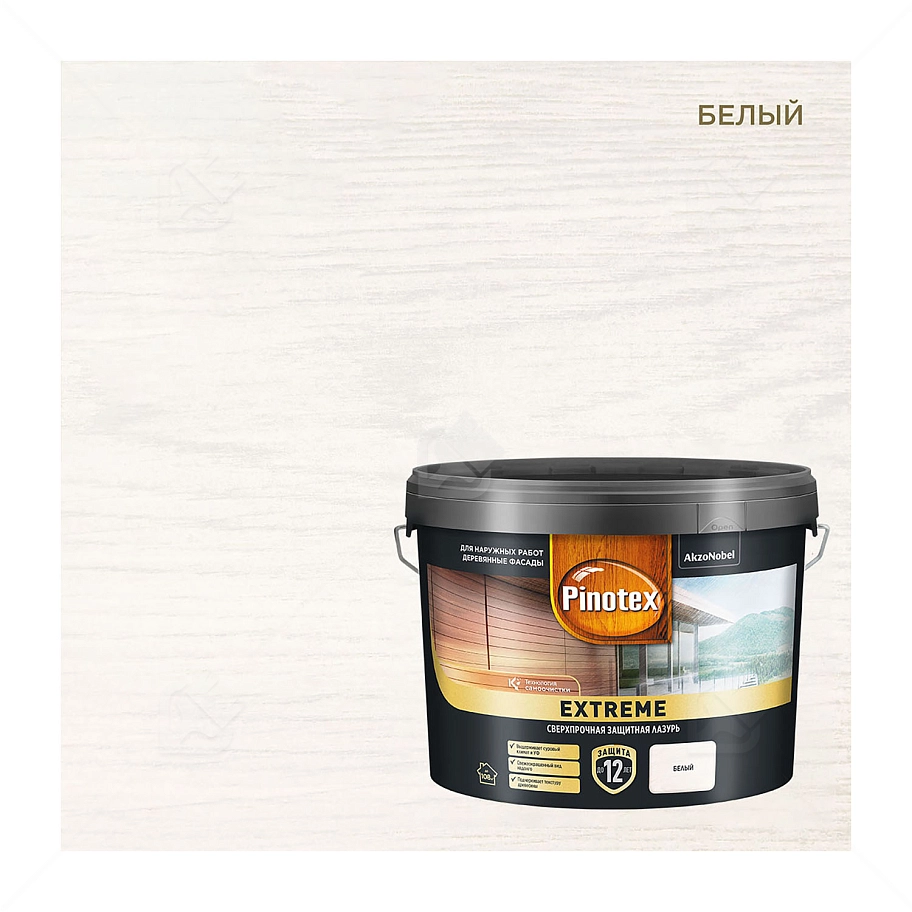 Пропитка декоративная для защиты древесины Pinotex Extreme белая полуматовая 9 л