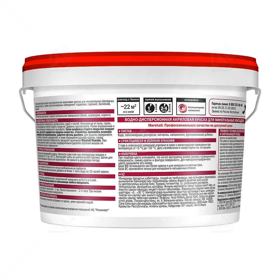 ПодробнееКраска фасадная акриловая водно-дисперсионная Marshall Фасад+ глубокоматовая база BW 2,5 л.