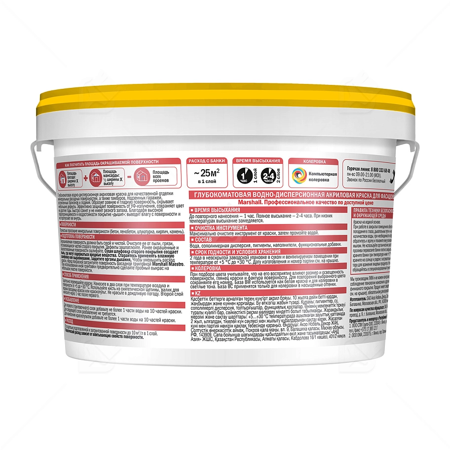 Краска фасадная акриловая Marshall Maestro глубокоматовая база BW 2,5 л.