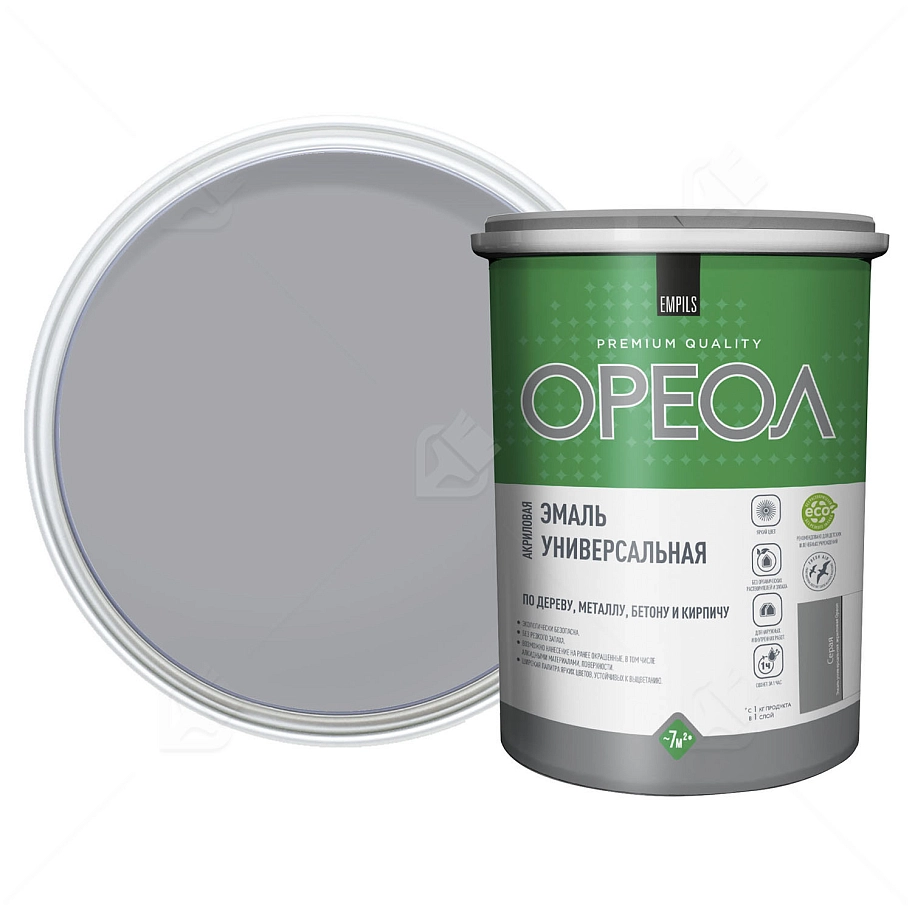 Эмаль универсальная акриловая Ореол глянцевая серая 2,5 кг.