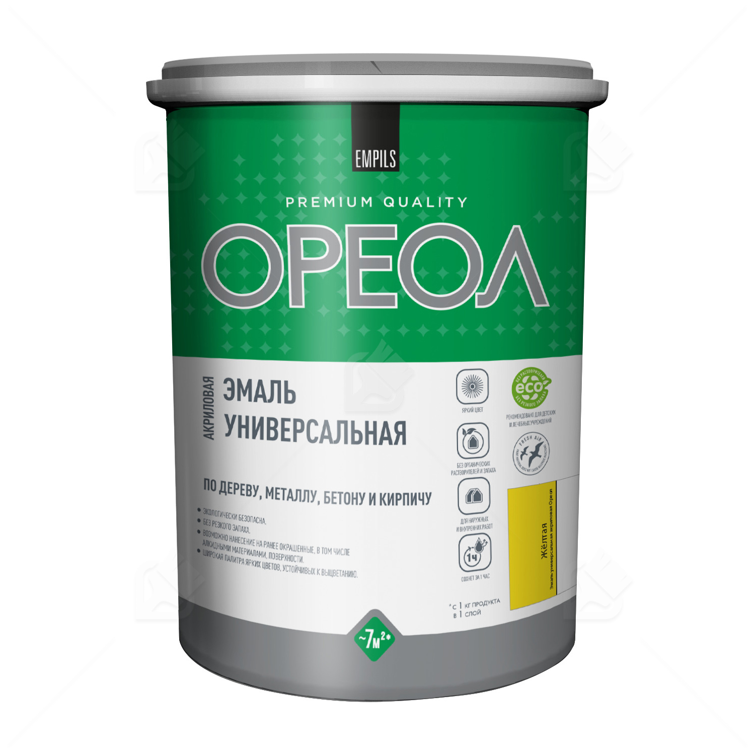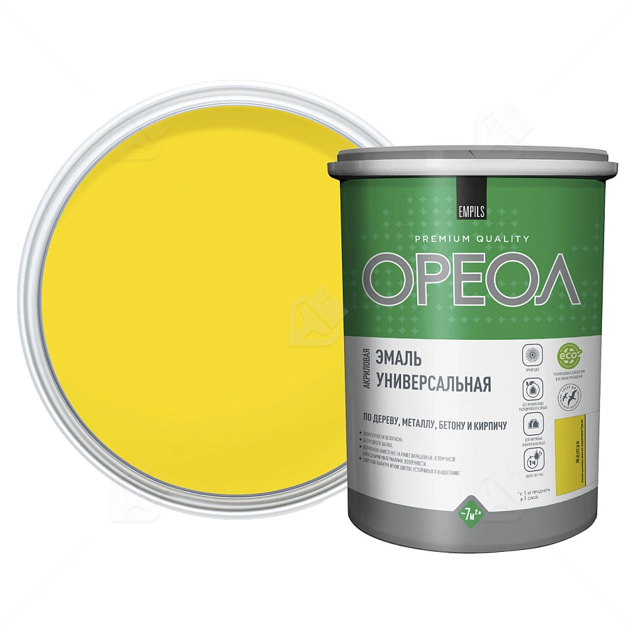 Эмаль универсальная акриловая Ореол глянцевая желтая 1 кг.