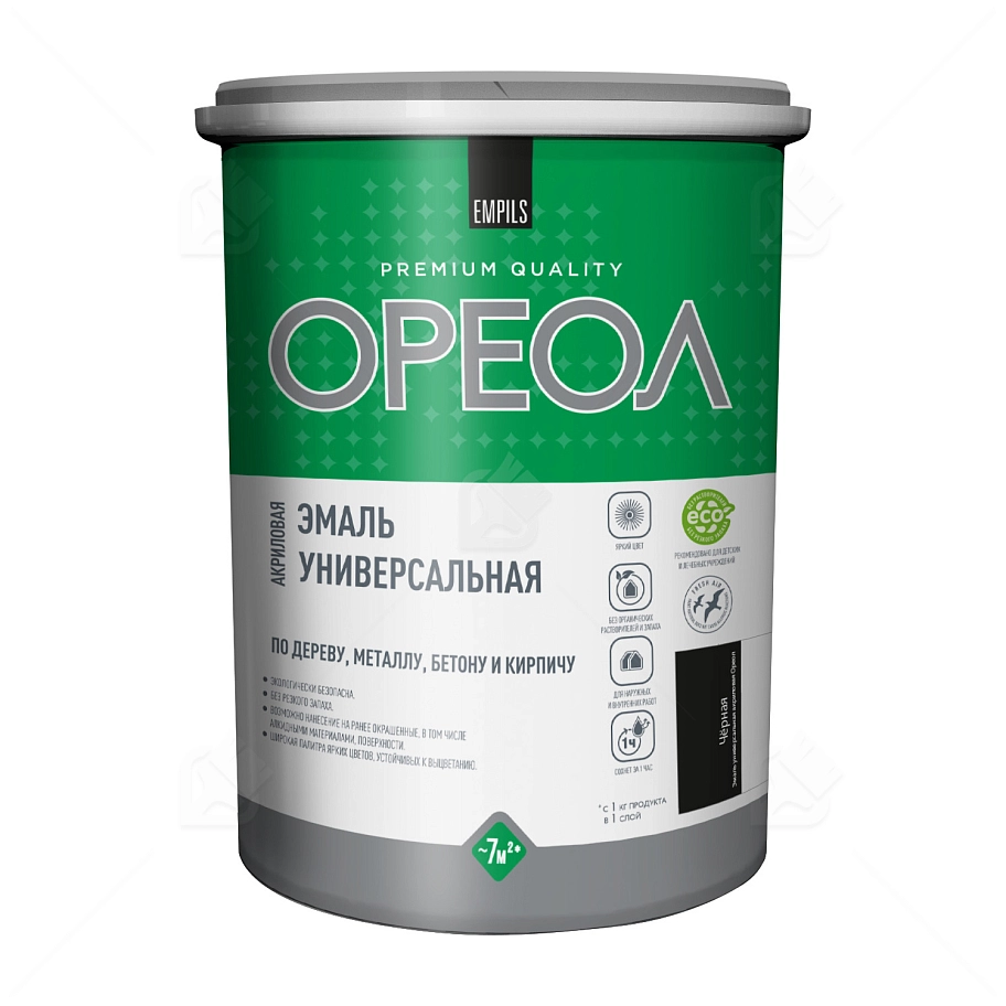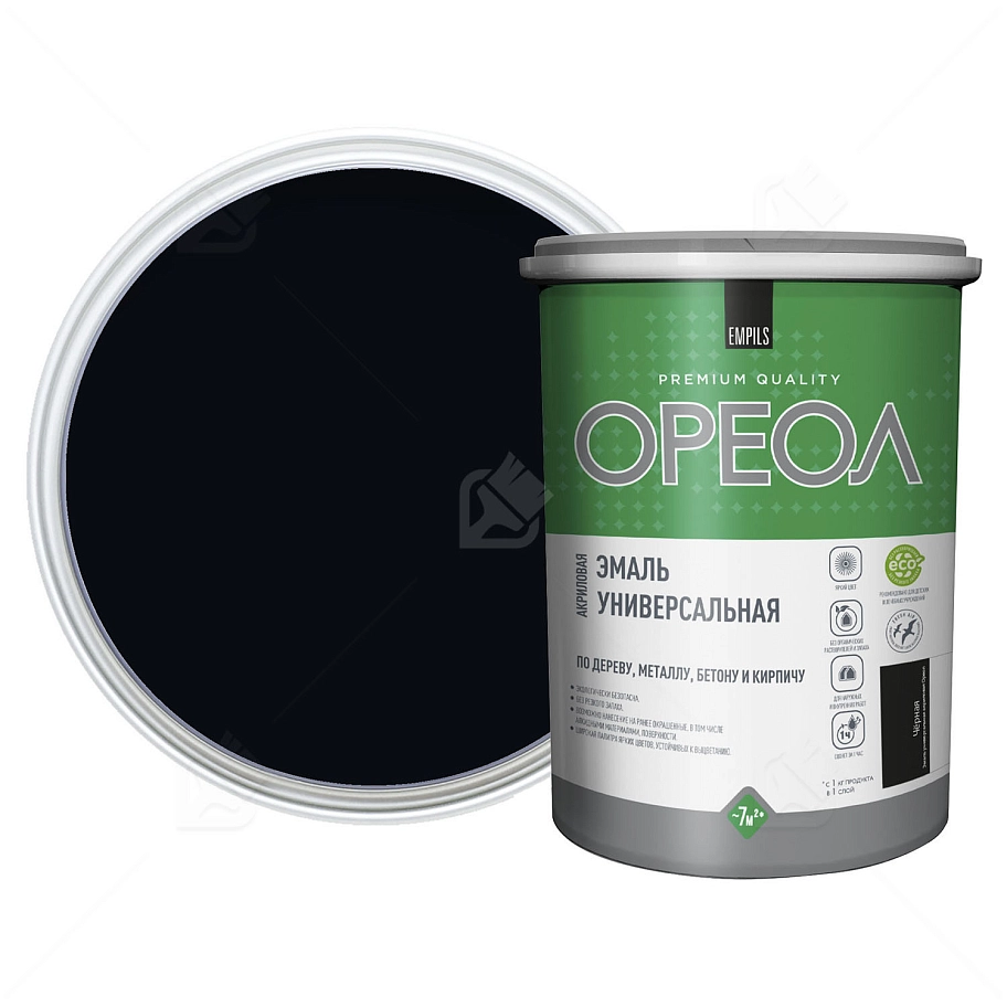 Эмаль универсальная акриловая Ореол матовая черная 1,1 кг