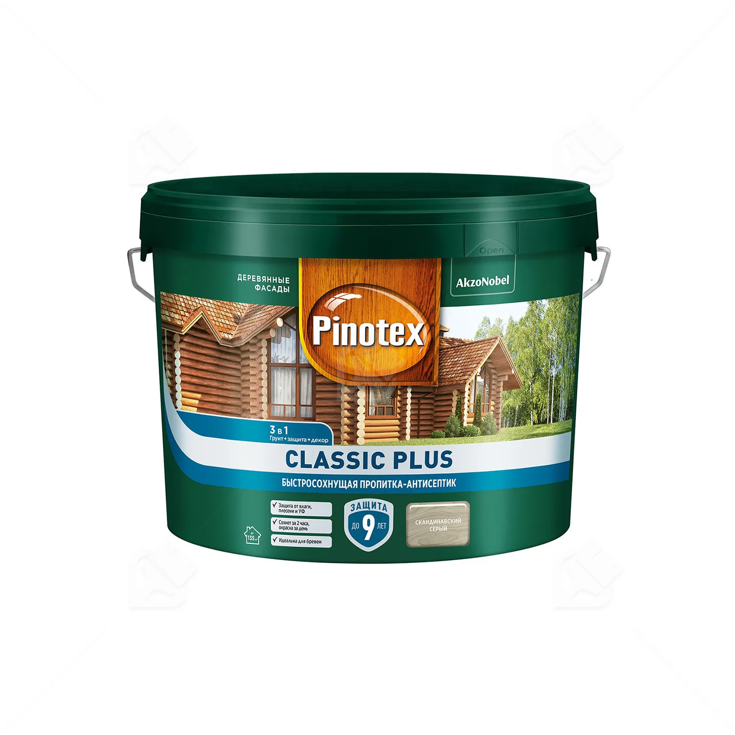 Пропитка декоративная для защиты древесины Pinotex Classic Plus 3 в 1 скандинавский серый 9 л.