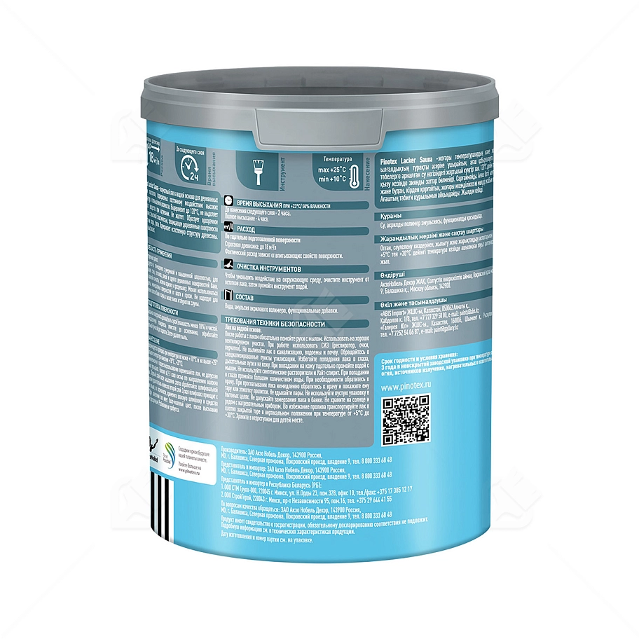 Колеруемый прозрачный лак на водной основе для деревянных стен и потолков, подверженных постоянному воздействию высоких температур и повышенной влажности. Выдерживает до 120°С, не выделяет вредных веществ при нагревании. Не желтеет, сохраняет естественный цвет древесины. Pinotex Lacker Sauna образует прозрачное эластичное покрытие, защищает деревянные поверхности от влаги, пара и грязи. Не растрескивается при перепадах температур и влажности. Лак удобен в использовании, легко разравнивается и не оставляет потеков, следов от инструмента при нанесении. Быстро высыхает, лакировку можно завершить за один день. Обладает экономичным расходом.