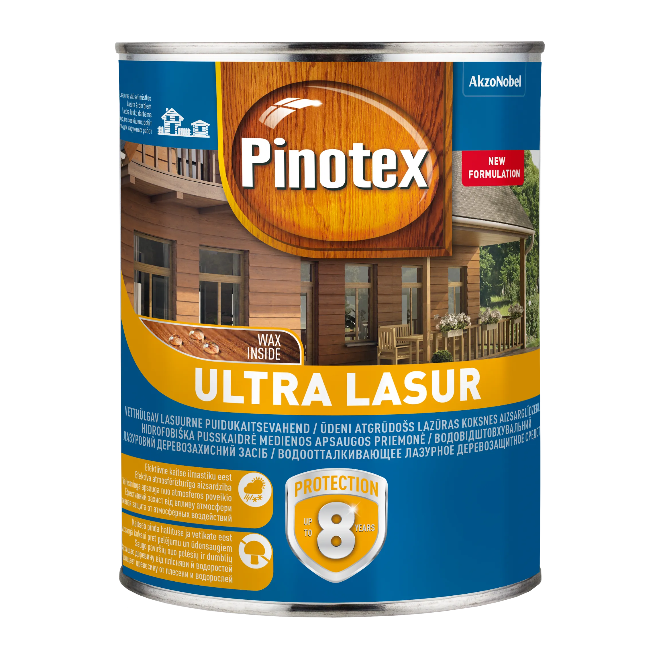 Купить декоративную пропитку для защиты древесины Pinotex Ultra в Москве теперь стало еще проще. Pinotex Ultra — это влагостойкая защитная лазурь для дерева, обеспечивающая до 10 лет защиты. Эта пропитка всесезонная, с УФ-фильтром, препятствует грибковым заражениям и появлению плесени, образует эластичное полуглянцевое покрытие с грязе- и водоотталкивающими свойствами. Усиленная воском, она создает прочное и эластичное защитное покрытие, которое не растрескивается.