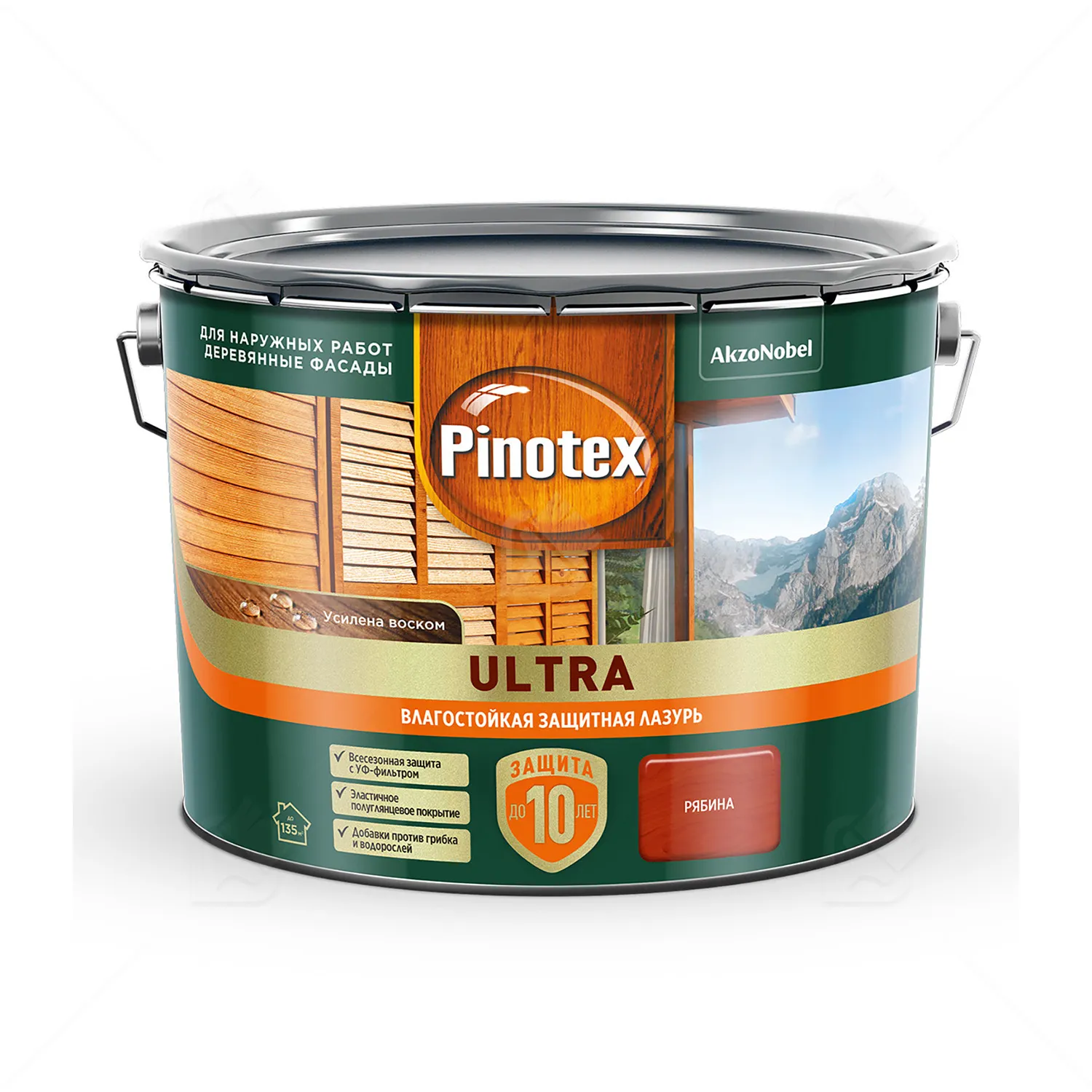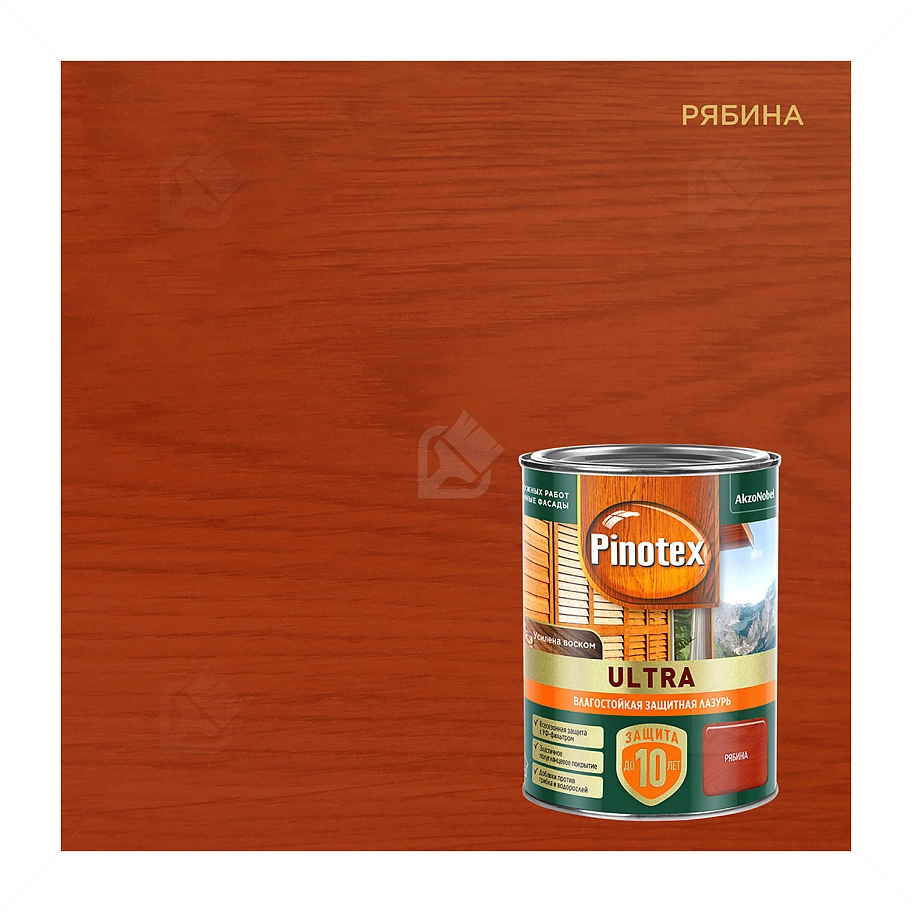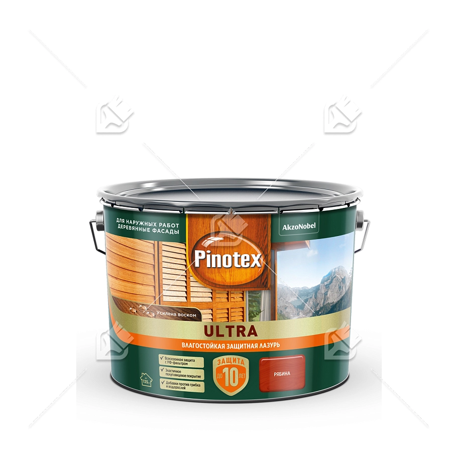 Пропитка декоративная для защиты древесины Pinotex Ultra AWB полуглянцевая рябина 9 л