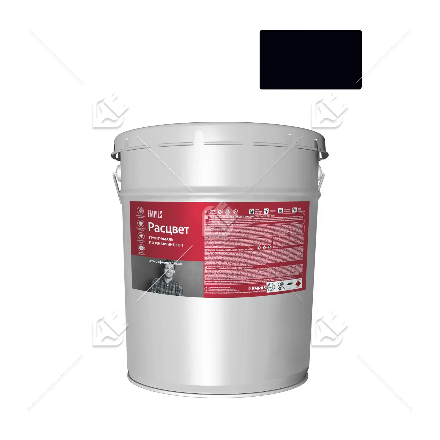 Грунт-эмаль на ржавчину 3 в 1 алкидная Расцвет глянцевая черная 17 кг
