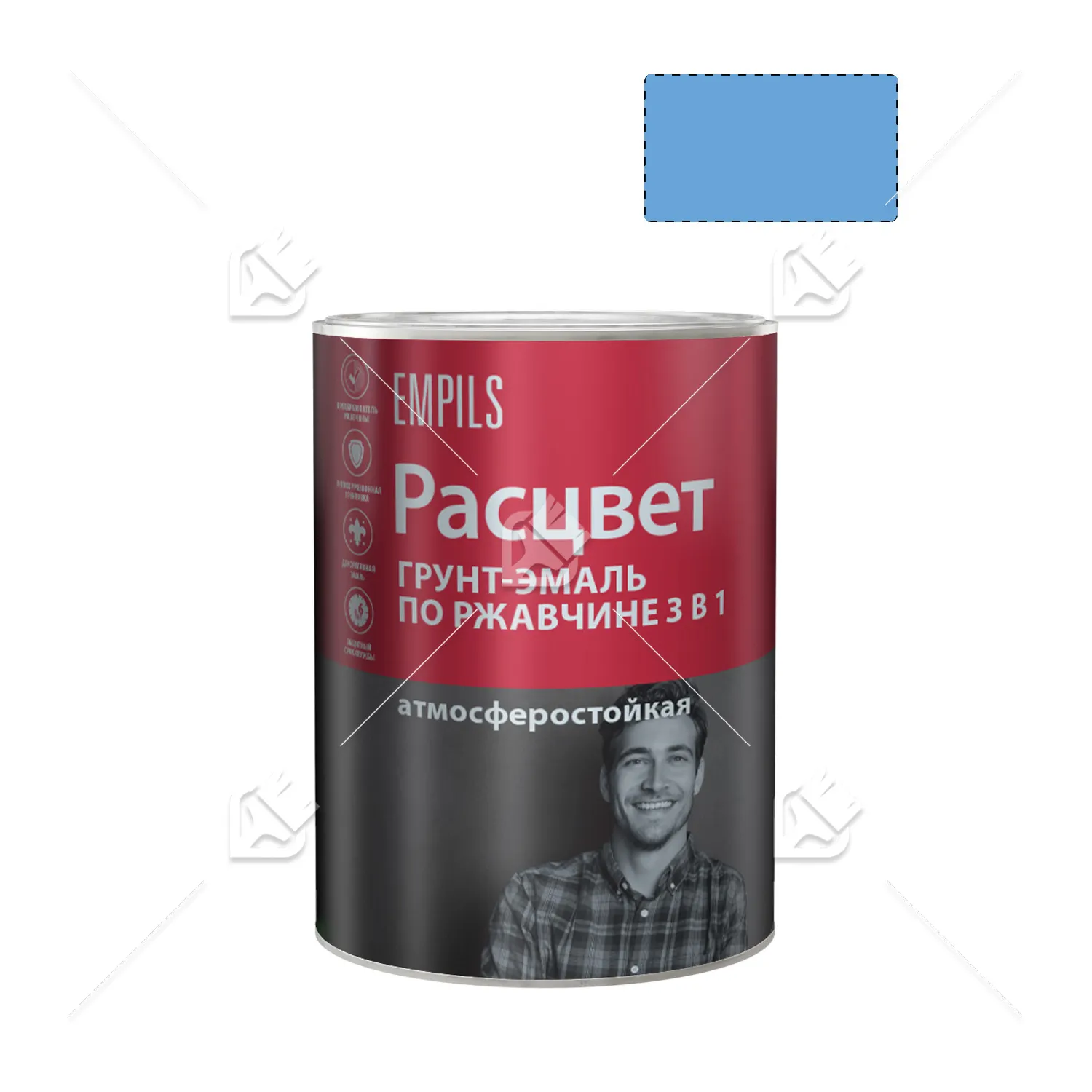 Грунт-эмаль на ржавчину 3 в 1 алкидная Расцвет глянцевая голубая 0,9 кг.