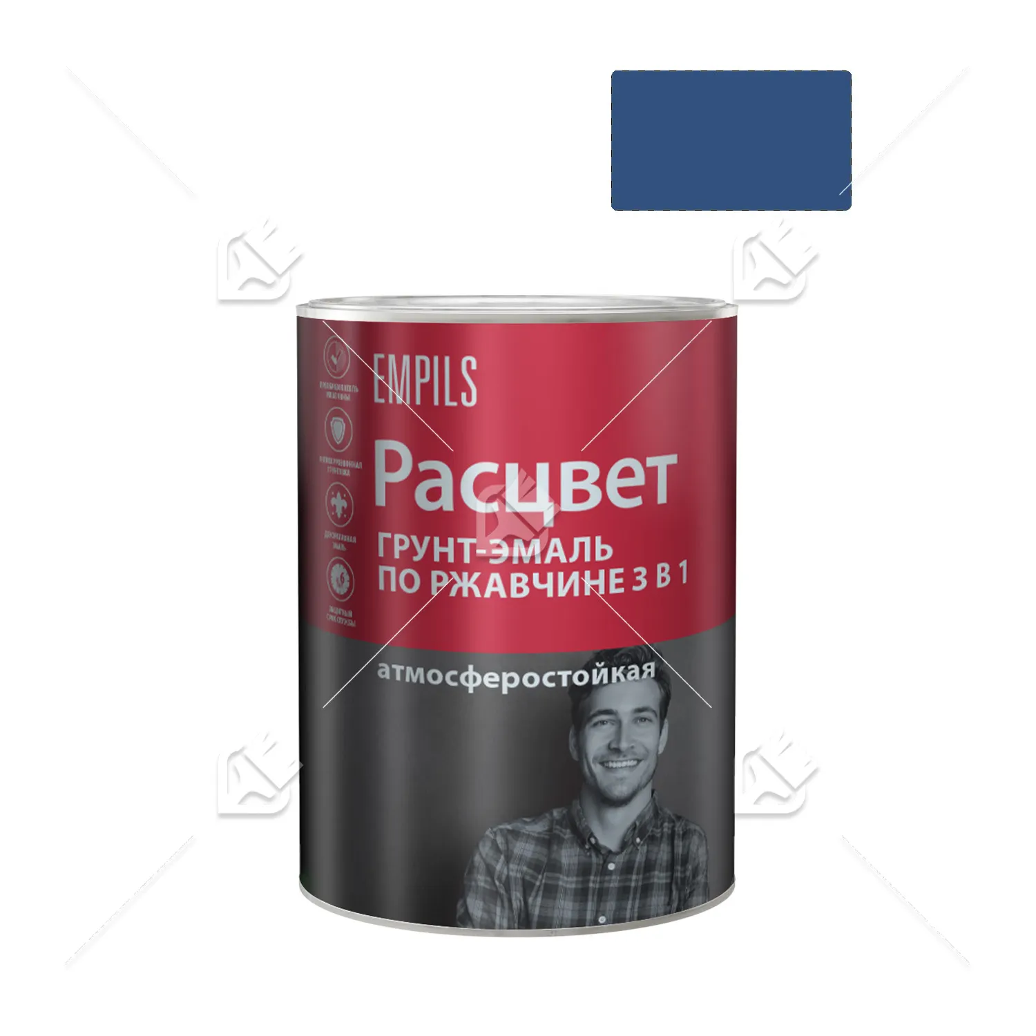Грунт-эмаль на ржавчину 3 в 1 алкидная Расцвет глянцевая синяя 0,9 кг.
