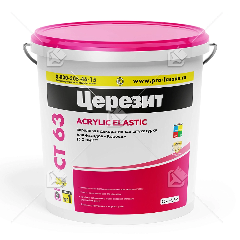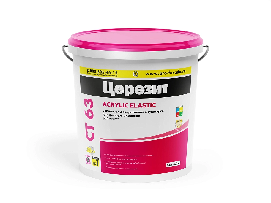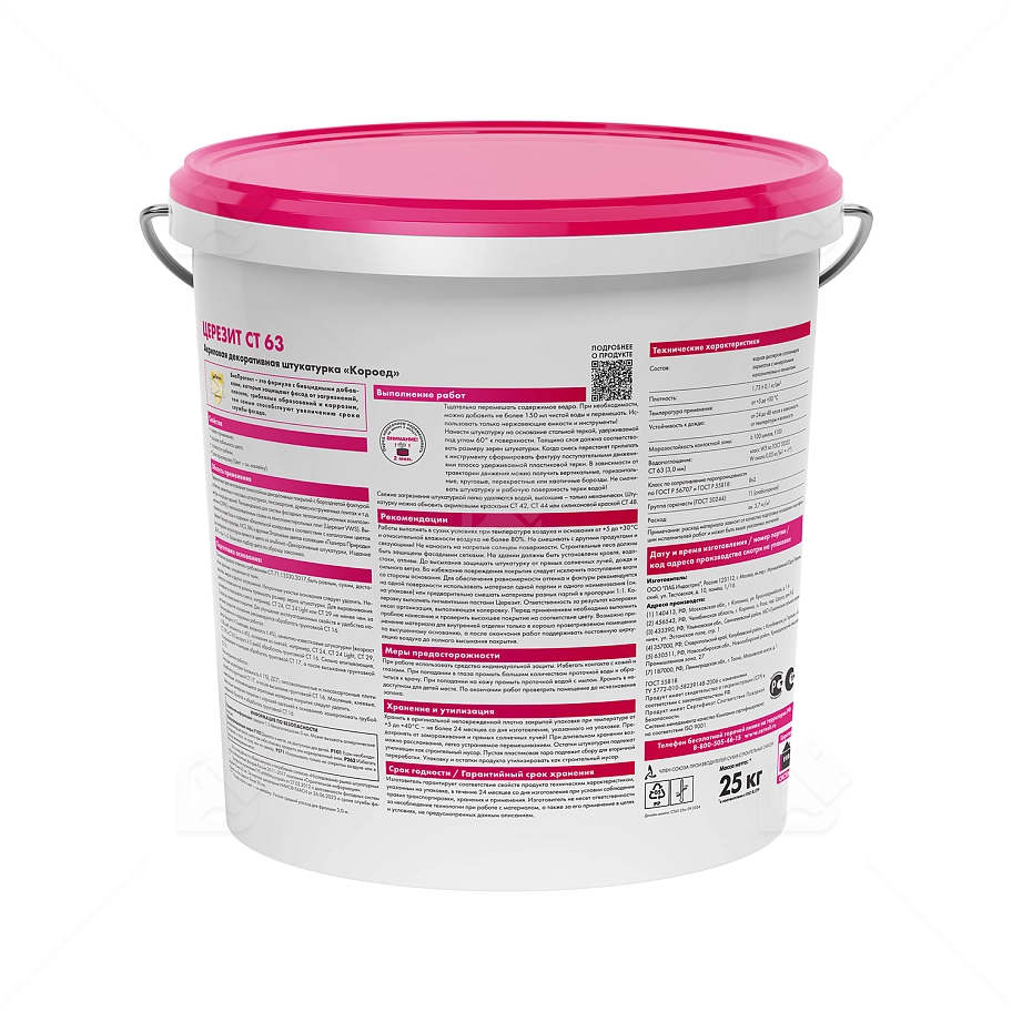 ПодробнееШтукатурка декоративная акриловая Церезит СТ 63 короед 3 мм база 25 кг