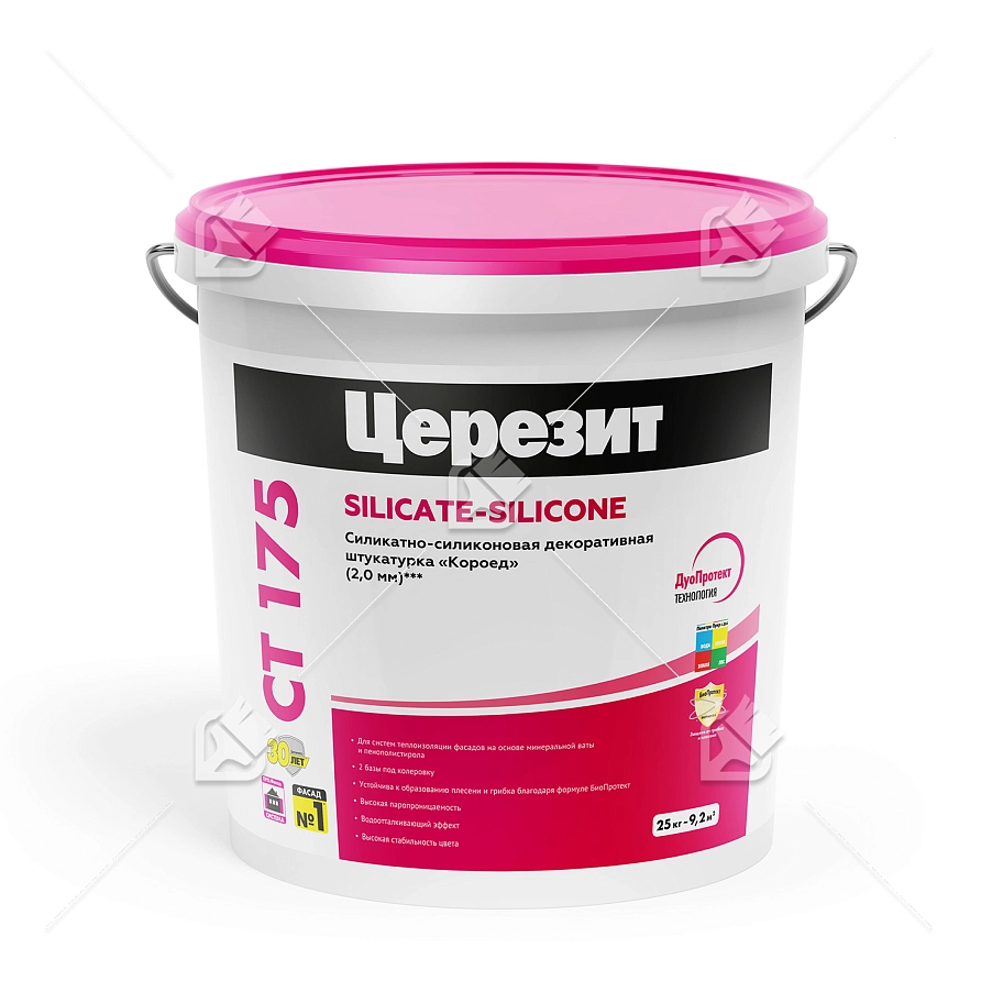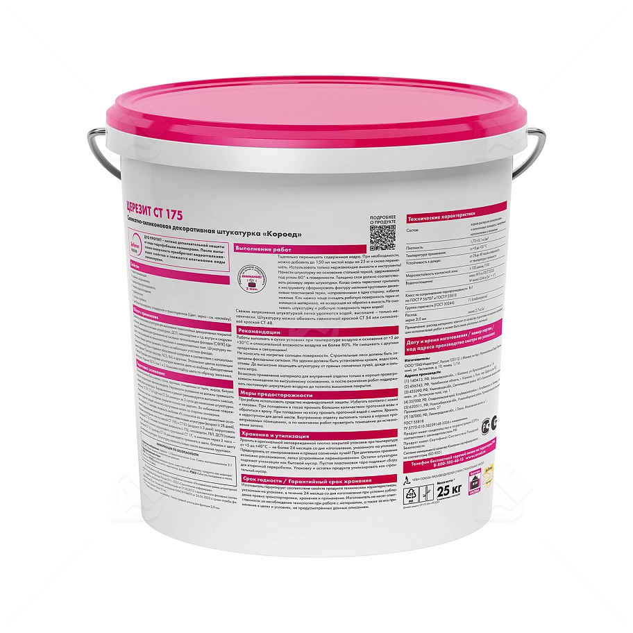 ПодробнееШтукатурка декоративная силикатно-силиконовая Церезит СТ 175 короед 2 мм база 25 кг