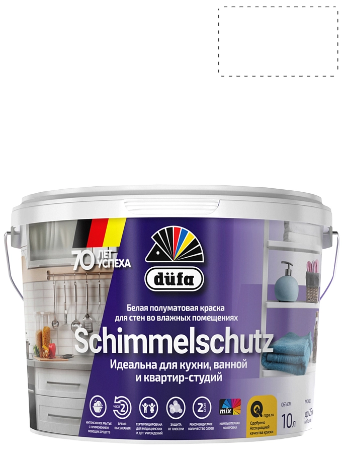 ПодробнееКраска для стен и потолков для влажных помещений водно-дисперсионная Dufa Schimmelchutz полуматовая 10 л.