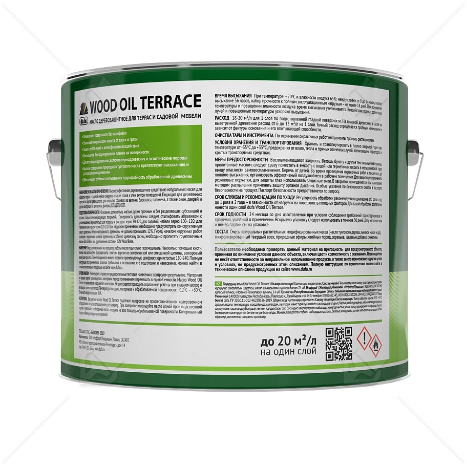 Высокоэффективное деревозащитное масло для обработки террас и садовой мебели снаружи, а также полов и стен внутри помещений. Подходит для деревянных строений из бруса, бревна, доски, для покрытия обшивок из вагонки, блокхауса, планкена, а также окон, дверей и других конструкций из древесины, фанеры, ДСП, ДВП, ОСП.