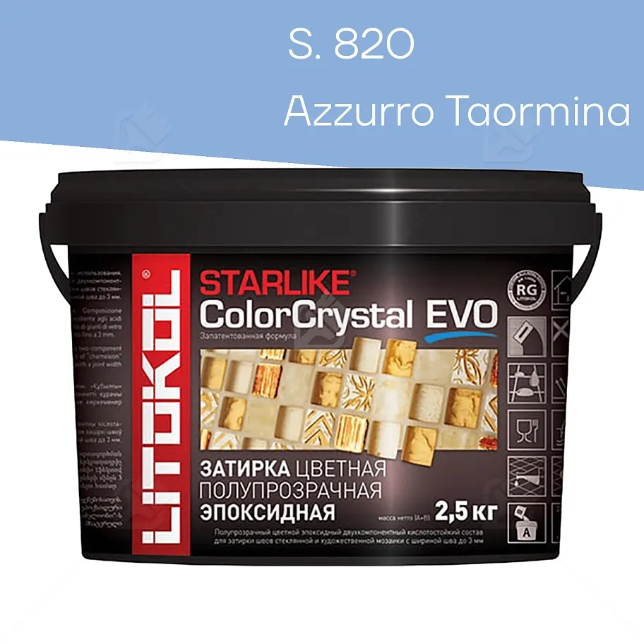 ПодробнееЗатирка эпоксидная Litokol Starlike ColorCrystal Evo S.820 cветло-синий 2,5 кг.