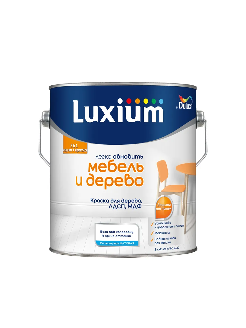 Краска для дерева водно-дисперсионная Luxium Мебель и дерево матовая база BC 2 лБаза