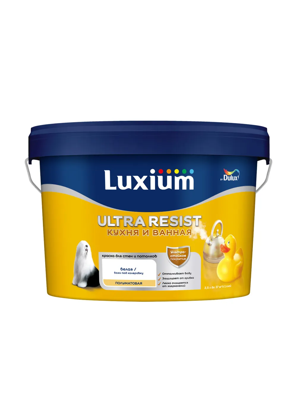 Краска для кухни и ванной латексная Luxium Ultra Resist полуматовая база BC 2,25 лБаза