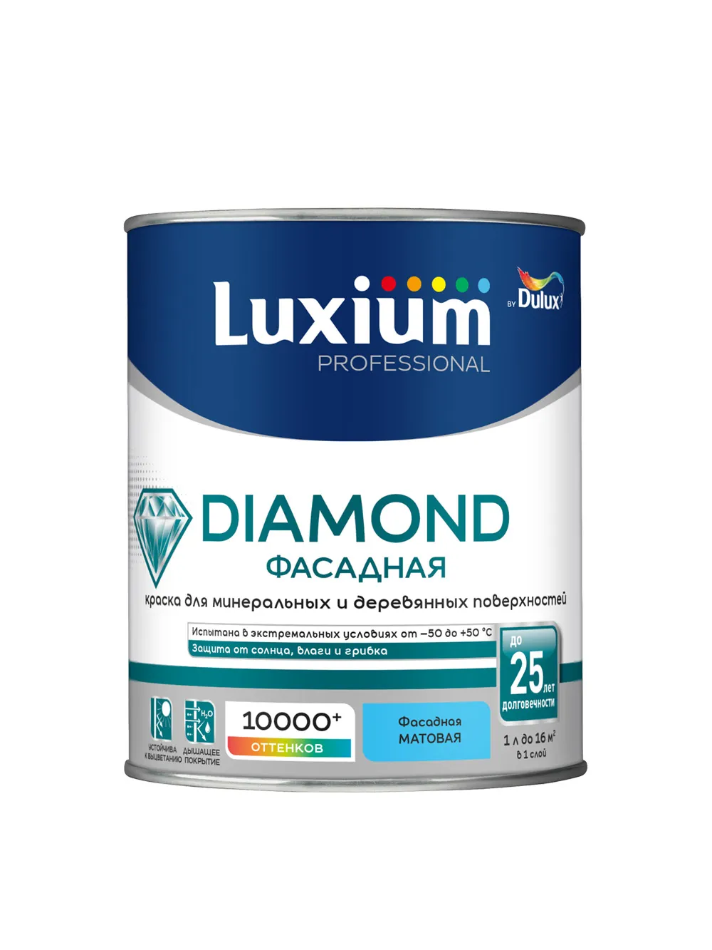 Краска фасадная для минеральных и деревянных поверхностей Luxium Professional Diamond гладкая матовая база BC 0,9 лБаза