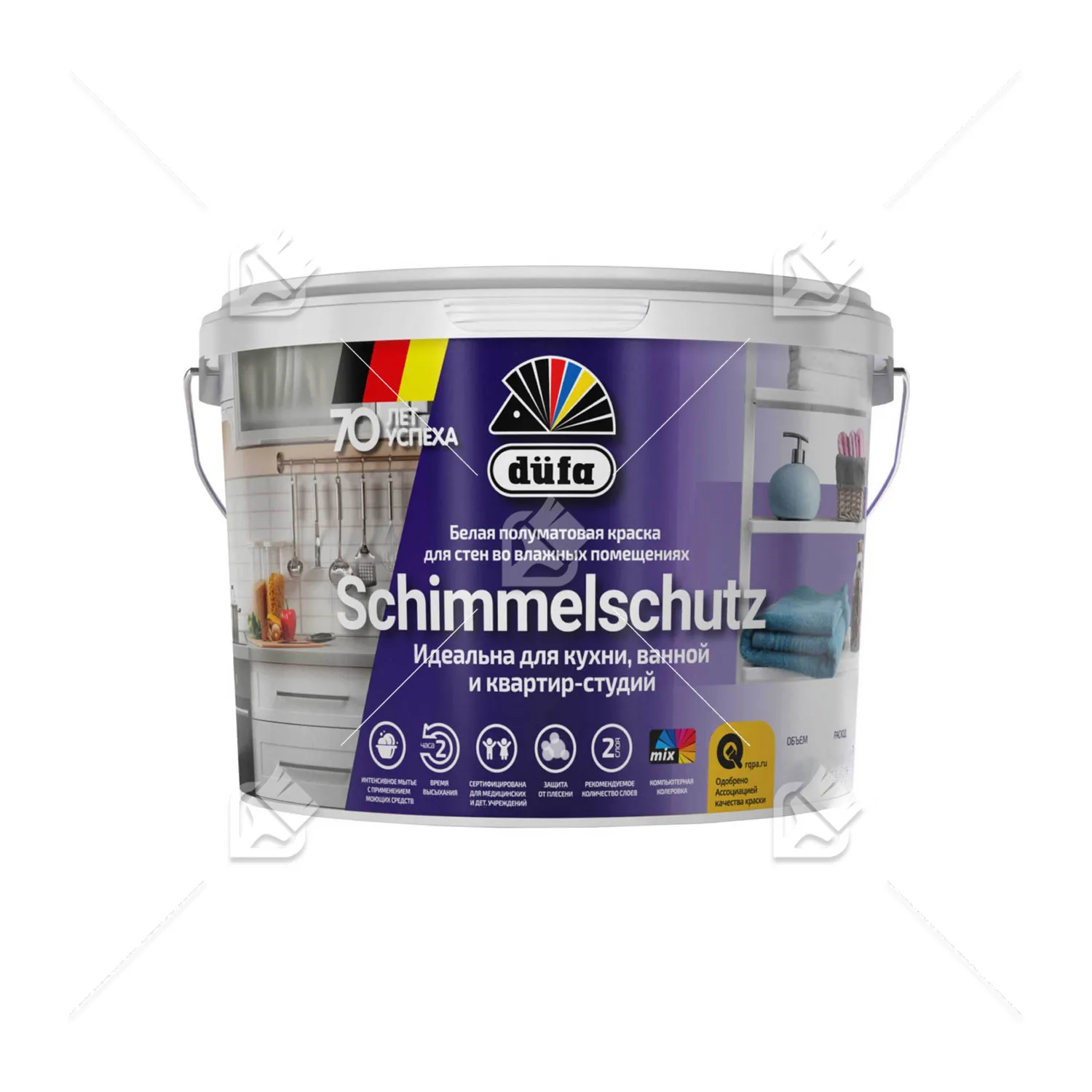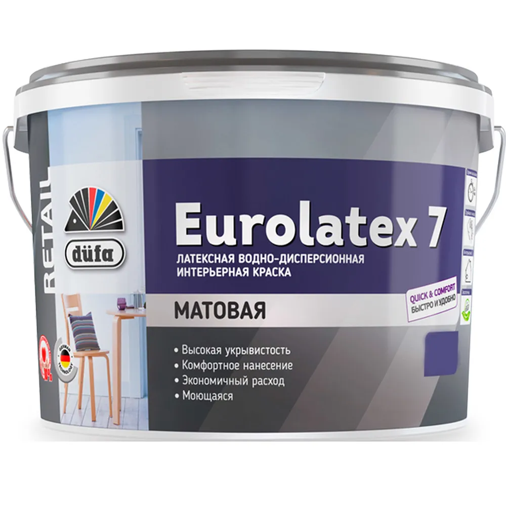 Краска для стен и потолков для влажных помещений латексная Dufa Mattlatex D100 матовая белая 2,5 л.База