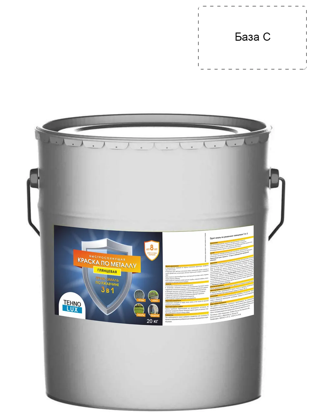 Грунт-эмаль 3 в 1 Технолюкс гладкая База C 18 кгБаза
