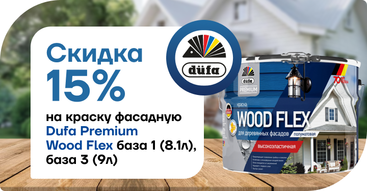 Скидка 15% на фасадную краску Dufa Premium Wood Flex