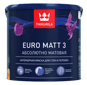 Краска для стен и потолков Tikkurila Euro Matt 3 глубокоматовая база А 9 л