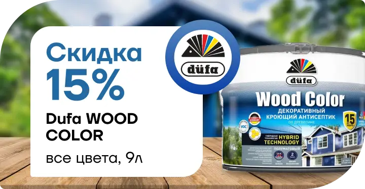 Скидка 15 % на декоративный кроющий антисептик Dufa Wood Color (9 л)