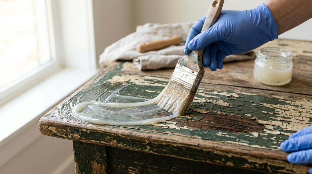 Мебель — это рельеф, стыки, резьба и нередко фанера или МДФ в основе. Подход к тому, чем снять краску с такой деревянной поверхности, отличается от работы с полом или стеной.